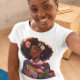 This design about an African=Ameican female student that is carrying her school books and ready to learn. She realize thar knowledge is powerful and beauty will only go so far. She is a girly-girl and loves to put flowers in her hair. You can personalize this t-shirt by adding your name on the back of the shirt or your school's name.