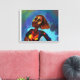 Very impressive product! The canvas is sturdily made. It features a saw tooth hanger on the back, making it easy to "try out" the canvas in several rooms until I found the best location. It attracts good comments from my friends. I love it! The printing is wonderful! Colors are as bright and crisp as they appeared on the website.