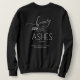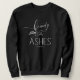 A black crewneck sweatshirt with a white "Beauty for Ashes" Isaiah 61:3 bible verse. This is a sweatshirt that can be personalized on the backside with a name or other words > just delete that option if not using it.