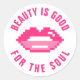 Beauty is good for the soul pink lips icon sticker. Cute quote with pink lip gloss lips. Custom stickers and sealers for beautician, beauty salon, cosmetology, makeup artist and more.