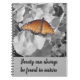 This notebook features a photo of an orange monarch butterfly in vivid color standing out against a black and white background. This simple yet stunning photograph is a reminder of the beauty of nature. A solid gray banner at the bottom of the notebook features words to inspire you to take notice of the beauty all around you. "Beauty can always be found in nature" can quickly and easily be customized to suit your desires.