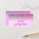 Eye catching, pink glitter look and chevrons beauty salon appointment cards. Suitable for many beauty-related businesses such as hairstylists, makeup artists, cosmetologists, fashion stylists, manicurists, beauty consultants, etc. Front reads 'Hello Gorgeous' in faux purple glitter letters on a lavender purple pink chevrons pattern background overlaid with purple and pink ombre glitter. Back provides appointment date and time and business contact details in matching, pink lavender ombre glitter accent with solid lavender pink background color. Background color may be changed on back, as well as text colors and/or styles on the back. Fill in the template with your own beauty business information. Other customizable boutique appointment cards are available in our Zazzle.com/angela65 shop.