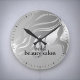 Beauty Salon Custom Name Platinum Silver Metallic Round Clock