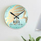 Beauty Salon Name Metallic Gold Aqua Blue Glitter Round Clock