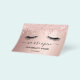A flyer for potential customers regarding the reopening your beauty salon business after Covid-19, the corona virus. A rose gold gradient background, with glitter drips and black lashes. On front: The text: We are open. Personalize and add your name and address.