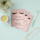 A rose gold gradient background, with glitter drips and a black lashes. On front: The text: Price list. Personalize and add your name and address.