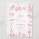 Pretty in Pink Spa Day party Birthday Invitation, features beauty spa elements. Cute bathrobe, pink bows, nail polishes, brushes, pink towels, candles, and slippers. All the text is editable. Great for a sleepover, slumber party, or pajama party.