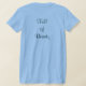 My overall review is that the T-shirt is nice, it fits true to size however the font is significantly smaller than advertised and you can't read it. The printing is unreadable and there is a strain to read it. It does not look like the advertised product. Maybe the shirt color is darker or a larger more visible font should have been used. Photos with and without flash and font is barely legible.