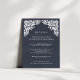 Designed to coordinate with our Beaux Arts wedding collection in Ink, this chic guest information card features a top border of cutout-style detailing in white, topping your key wedding details, like hotel accommodations, welcome reception information, website and more. Add your custom text using the fields provided and use the Customize function to adjust fonts, sizes and spacing.