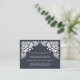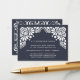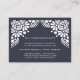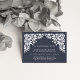 Designed to coordinate with our Beaux Arts wedding collection in Ink, cards feature white lettering on a midnight blue background accented with lacy white cutout style detailing at the corners.