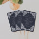 Our art deco style wedding program fan features your ceremony details in elegant white lettering, framed by lacy white cutout style details at the corners on a rich midnight blue background. Reverse side lists the members of your wedding party with easily editable text fields. Coordinates with our Beaux Arts wedding invitation collection in Ink. Use the template fields to add your ceremony and bridal party information, and then click "Customize It" to reposition elements if needed. Need help? Contact me via the "Ask this Designer" link on this page.