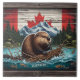 Beaver by Mountain, Canadian Flag Ceramic Tile