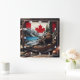 Beaver in Canadian Wilderness With Flag Background Square Wall Clock
