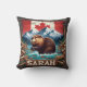 Beaver, Mountain, Flag, Blue Ocean Throw Pillow