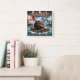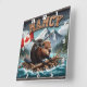 Beaver on Raft With Flag in Scenic View Square Wall Clock
