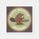 This happy beaver is ready to build his lodge with a chainsaw. Drawn in fun cartoon illustration style for a party!