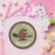 This happy beaver is ready to build his lodge with a chainsaw. Drawn in fun cartoon illustration style for a party!