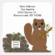 A cute beaver with big teeth and a beaver dam with a cute sign on it. Customize with your new address.