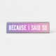 Humorous desk sign for your office decor. It says "Because I said so" in all caps on a pink and purple ombre background. Having a positive quote on your desk can help you be more assertive at work!