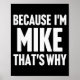Because I'm Mike That's Why Am D Name Poster