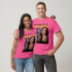 My 11 yo wore adult XL (5’7” 165#). The 8yo is small framed. She wore adult small and tied it in the back. Grandma wore adult large with long sleeve shirt underneath. Tall girl adult medium. Dark haired male adult large. Good quality dark Heather gray, Gildan brand shirt. -it was next up from basic choice and cost about $20 per shirt. Not too thick or thin. Washed and dried well, no major shrinkage. Not see-through. Can wear a bra under it fine. Screen print is just as shown and well done, front and back.