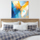 An abstract interpretation of a butterfly captured mid-transformation. Sweeping layers of blue, gold, and soft white dissolve form into movement, evoking renewal, freedom, and the fragile moment between stillness and flight.