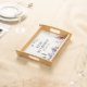 With a beautiful watercolor floral design and modern fonts this custom bed and breakfast serving tray makes the perfect addition to your home. This style fits with modern farmhouse, boho, country, or rustic elegant styles.
