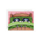 Whimsical cat art postcard. 2 black and white cats peering at 3 grey mice from behind the bed sheets. Created from an original painting 2008 Lisa Marie Robinson