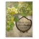 This is a small, lightweight wired notebook that makes a delightful beside the bed guest book for your guest room or for a Bed and Breakfast or similar lodging venue. Hand painted original artwork created by Audrey Jeanne Roberts features a rough, textured aged and worn stone wall background with backlit sunshine pouring through the Chardonnay grapes that are just about ready to harvest. The vines hang from a vineyard and a frame holds the bride and groom’s names in a wine bottle label style. You can easily customize the name on the front label using the template fields provided.