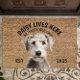 This welcome mat can be personalized with your dog’s name, the slogan can also be changed or you could use a picture of your own dog (make sure it's transparent). Text reads: Daisy Lives Here…. All treats welcome.