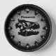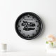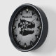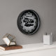 Tell time in prehistoric style with this cool grey Dino themed clock. Beware of the dinosaurs ready to ambush from their hiding places between the hour teeth. The customizable text makes this Triassic time piece a great personalized gift idea for the Dino enthusiast.