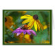 A purple coneflower and a blackeyed susan serve up a meal to a honey bee.