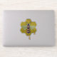 Bee and Hive sticker. Cute bee on geometric Honeycomb.
