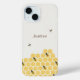 A phone case with a pattern of a bee on honeycombs at the bottom and customizable brown forename or text: perfect to make a gift to a beekeeper, a bee lover or a girlfriend who loves nature.