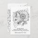 A delicate a lovely illustrations of bees and sunflowers. An added novelty of this design is that the sender or receiver can use it as a coloring page
