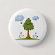 Bee and Tree Nature Scene with Flowers and Clouds Button
