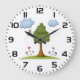 Bee and Tree Nature Scene with Flowers and Clouds Large Clock