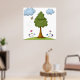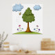 Bee and Tree Nature Scene with Flowers and Clouds Poster