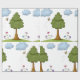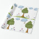 Bee and Tree Nature Scene with Flowers and Clouds Wrapping Paper