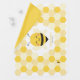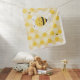 Unique bee baby blanket you can personalize for your child. Includes adorable hand drawn bee illustrations on honeycomb background in yellow, white and black.