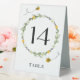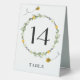 Bee-themed Table number card featuring watercolor wreath with greenery and daisies along with buzzing bees. Table number card prints on front and back (double-sided). Items are printed exactly as they appear on your screen when you add to cart, so personalize and add each table number that you need to your cart individually.
