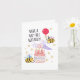 Send a cheerful birthday wish to your loved one with this cute bee greeting card that says “Have a Hap-Bee Birthday!” The front of the card features two happy bees wearing party hats buzzing about in celebration. One bee is carrying a large cake with lit candles and sparklers on top. The second bee is bringing a red balloon to the party. Personalize the inside with your own note of affection to create a special moment and keepsake.