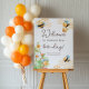 Welcome your guests in the sweetest way possible with this adorable “bee-day” sign! Personalize it with your little one’s name and let the honeycomb vibes and smiling bees set the tone for an unforgettable first birthday.