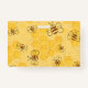 A cute modern bee pattern with little honey bees buzzing around a bright cheerful yellow honey comb.