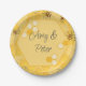 A cute modern bee pattern with little honey bees buzzing around a bright cheerful yellow honey comb.