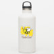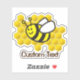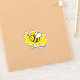 Yellow and black flying smiling honey bee cartoon on beehive background. Custom text.