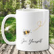 This coffee mug is decorated with watercolor honey bees and "Bee Yourself" in stylish script typography.