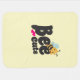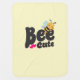 Bee Cute baby blanket design with a Cute sleeping bee and hearts. The back of the blanket has a pattern of Busy Beez.