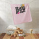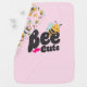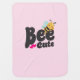 Bee Cute baby blanket design with a Cute sleeping bee and hearts. The back of the blanket has a pattern of Busy Beez.