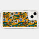 Bee-eaters, blue butterflies and daisies on orange speck iPhone case